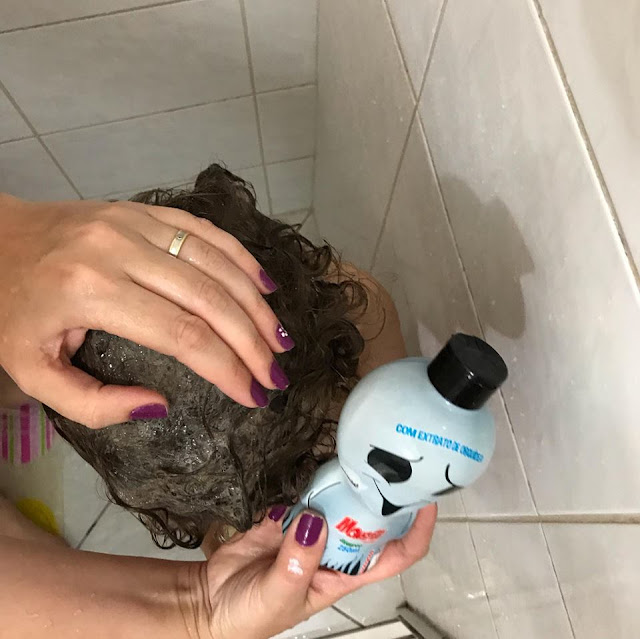 Lara já está crescidinha, não chora pra lavar os cabelos, mas não gosta muito porque cuidar de cabelos cacheados requer uma pitada adicional de cuidados, principalmente na hora de pentear - mesmo com pentes de dentes largos. Mas com esse calor não tem jeito, elas vão à escola, brincam, transpiram e precisam lavar os cabelos todos os dias. E aí entra a parte do produto ser bom, de cuidar dos fios, deixando-os soltos para poder facilitar na hora de pentear. E nesse quesito, nota 10 pra essa linha!